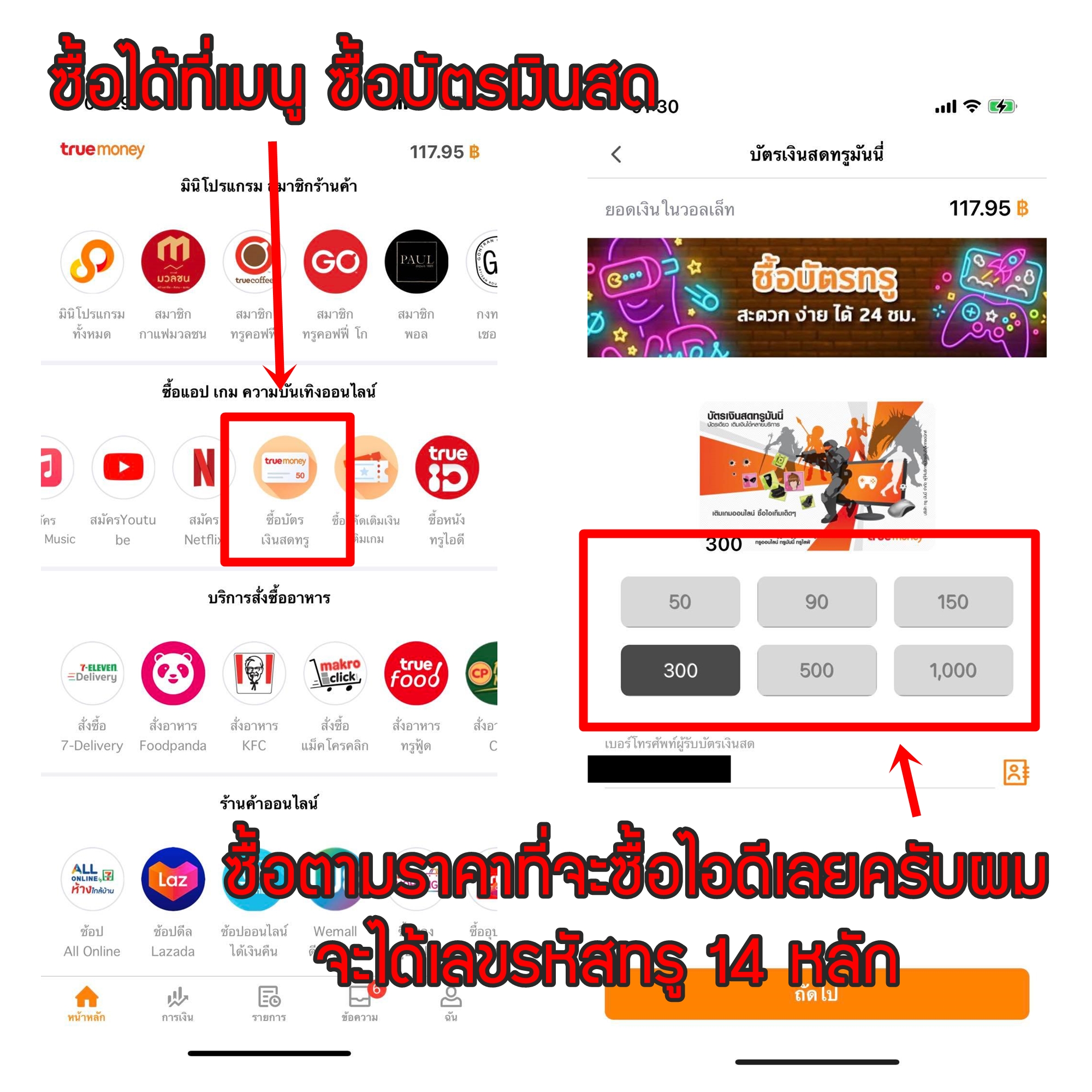 2.จะได้หน้าต่างนี้ หากเราสนใจให้ดูข้อมลูและซื้อบัตรเงินสด ทรูมันนี่ มาตามราคาที่จะซื้อ